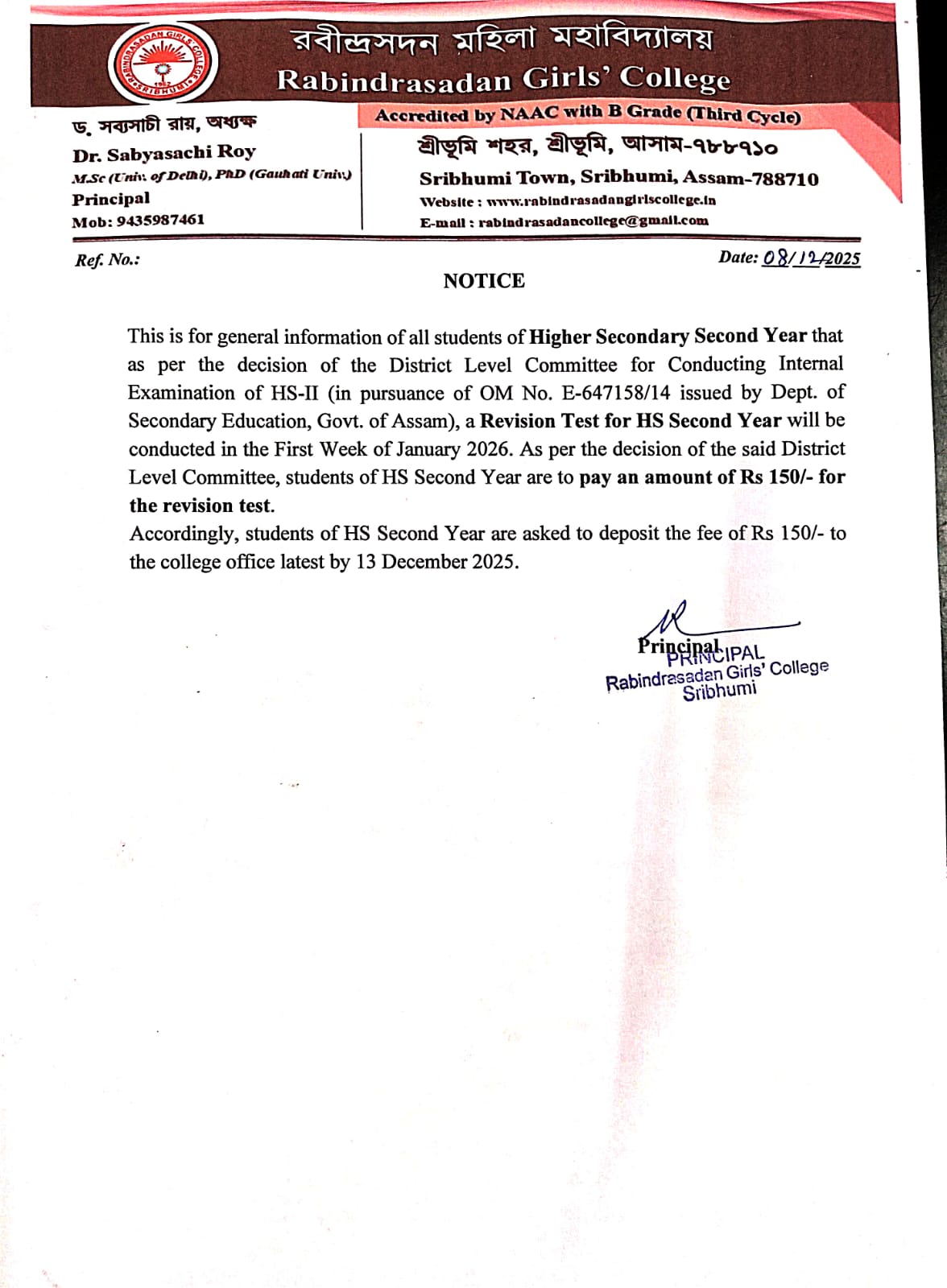 © Rabindrasadan Girls' College, Karimganj-788710, Assam. All rights reserved | Developer