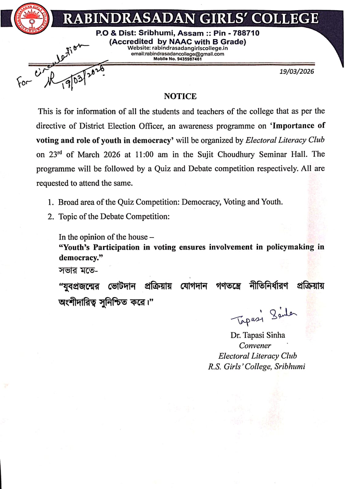 © Rabindrasadan Girls College, Karimganj-788710, Assam. All rights reserved | Developer