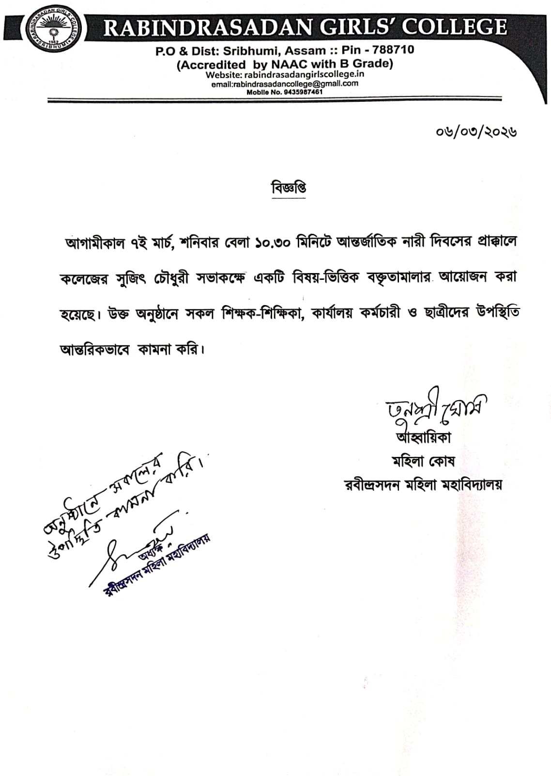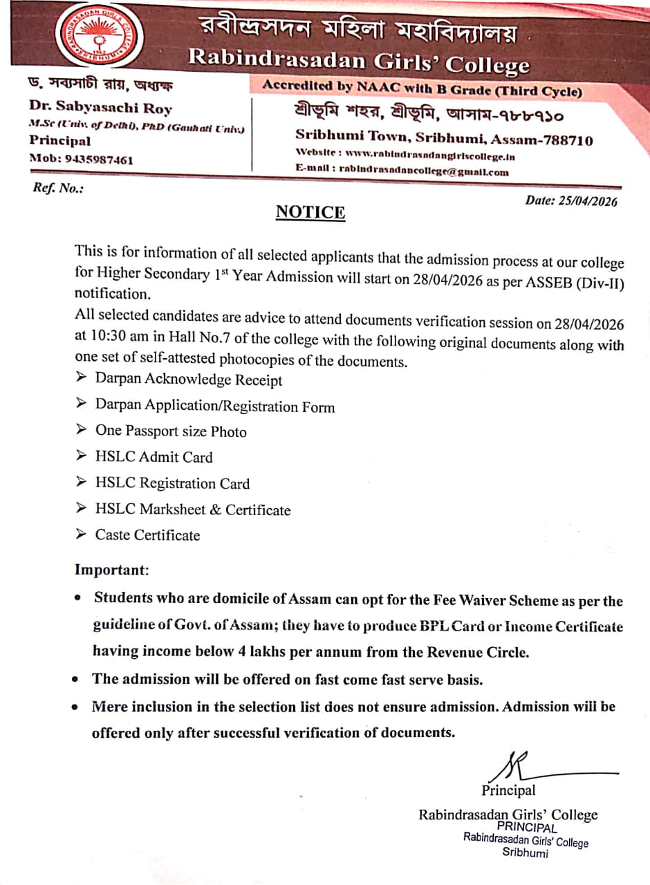 © Rabindrasadan Girls College, Karimganj-788710, Assam. All rights reserved | Developer