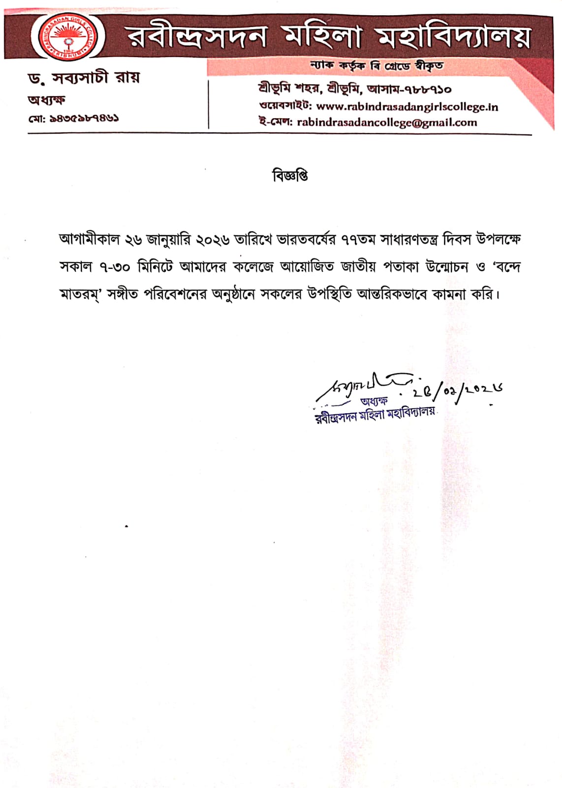 © Rabindrasadan Girls' College, Karimganj-788710, Assam. All rights reserved | Developer